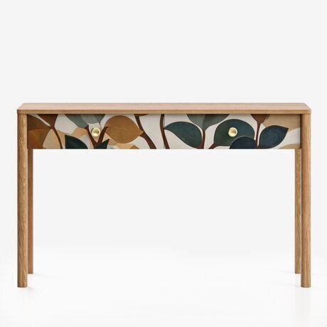 На фото консоль представлена: тонировка - Дуб карамель, принт - Цветы Эмиля, ручки - В1.