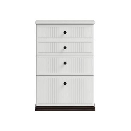 Высокий комод из коллекции Crystal создан для спален и гостиных в духе современной классики и северного модерна. Но ничто не мешает вам поставить его в сканди-квартиру или даже в аскетичный минимал-интерьер: универсальность — главная черта нашей мебели. Четыре просторных ящика для хранения, направляющие с доводчиками, обеспечивающее плавное и бесшумное закрывание, массивные ручки, приятные тактильные ощущения от материалов — из этих деталей складываются впечатления от пользования комодом. Мы никогда не ставим дизайн выше функциональности, именно поэтому каждая деталь служит одному — вашему комфорту. Фасады комода украшают гравировка и ручки в стильной отделке. Тонированное основание из массива дуба и эмалированная столешница с многогранной ступенчатой фрезеровкой демонстрируют утонченную изысканность дизайна вне времени.